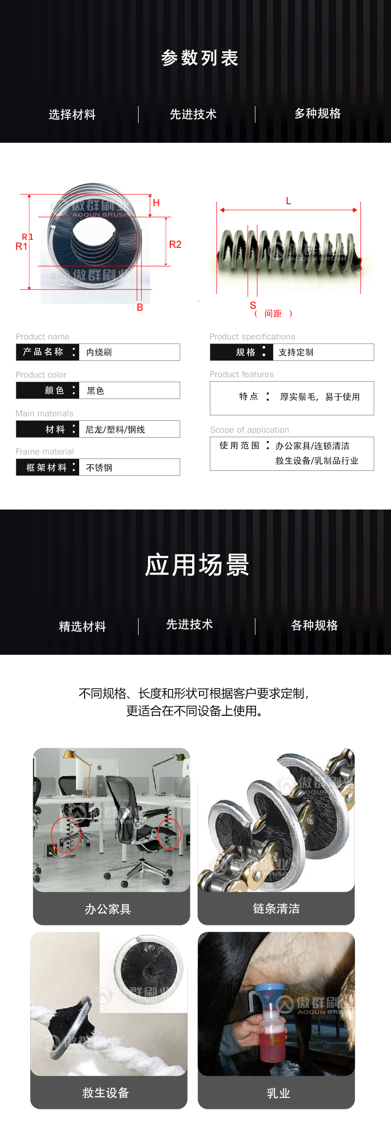 - 功能/用途:乳業等場景辦公家具、鏈條清潔、救生設備