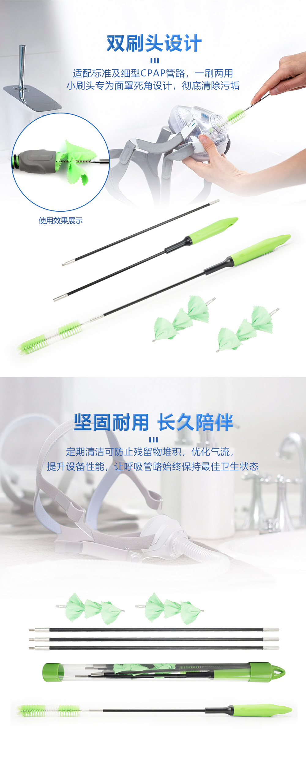 - 功能/用途:專為CPAP管路深層清潔設(shè)計(jì),適配標(biāo)準(zhǔn)及細(xì)型CPAP管路