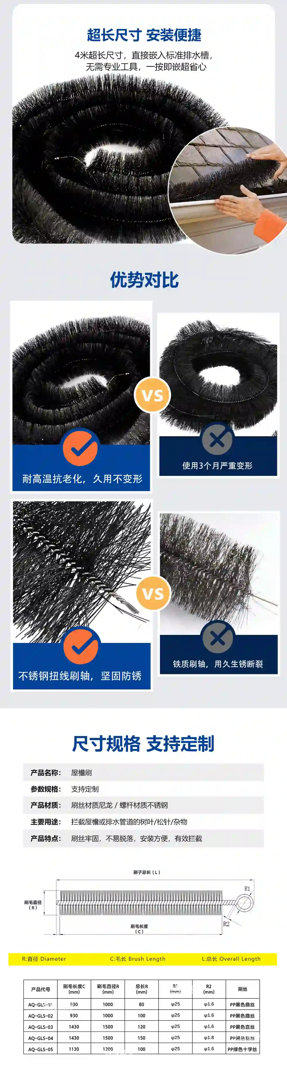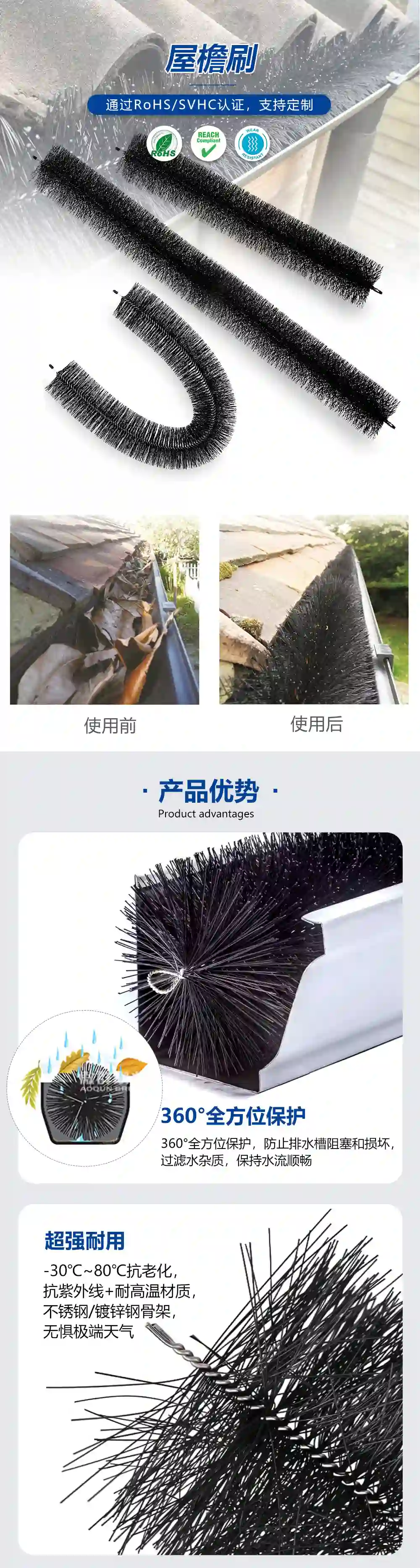 - 應(yīng)用范圍:攔截屋檐或排水管道的樹葉/松針/雜物